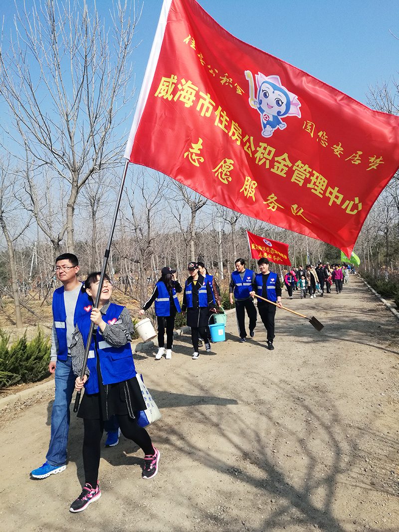 统一服装,在标有“威海公积金青年林”的指定地点,按照技术人员的要求开始挖坑、植树、填土。